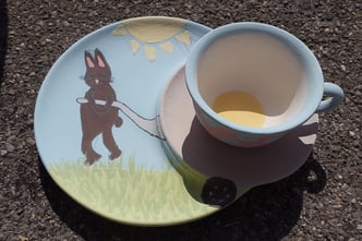 Nach dem Trocknen glasieren und brennen wir dein Kunstwerk und du kannst es nach einer Woche fixfertig - und spülmaschinenfest - bei uns abholen.